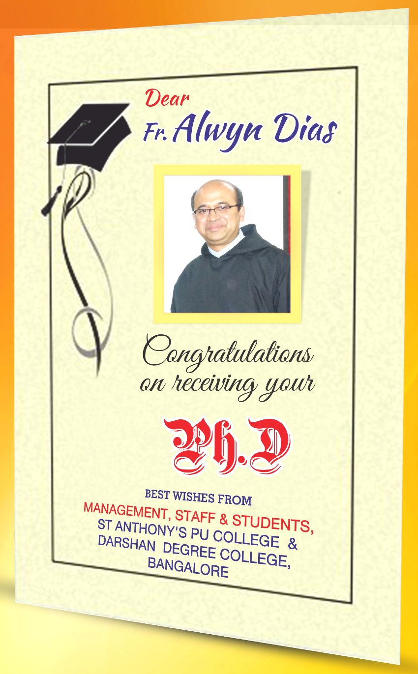 Congrats to Rank holder Fr. Roshan, Hearty welcome to